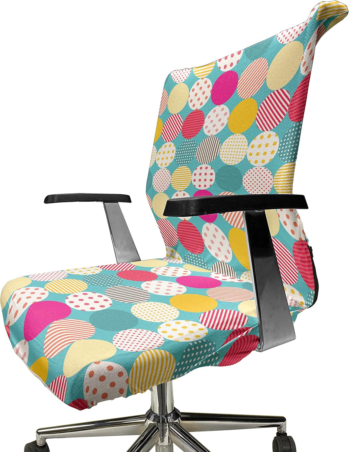 "Give your old office chair a flair and crisp look with these protective slipcovers. Change the aura of your office with a simple touch with fun and stylish patterns. Cover your desk chair's tears, rips, and tattered edges, or protect your untouched office chair from daily mishaps and hair. This slipcover for office chairs has a universal fit, suitable for most standard-size computer chairs with or without armrests. This lightweight slipcover is made of 95% polyester and 5% spandex for ultimate comfort, softness, and flexibility. It has full coverage with all-around elastic finishes. All you need to do is slip it over your chair gently. And let the zip up the side zippers. Also, it has ties to fasten the seat cover under. It's very easy to install and remove. This office chair cover is easy to take care. It's machine washable on cold/delicate cycle and tumble dry safe on low heat. This stretch cover for chair adds ultimate style to your gaming, working. Set assorted modes for every season; summer, Christmas, St Patrick's Day, Valentine's Day, Autumn, Sports Week, Geek Pride, and any theme you can imagine... Or just buy one to make your day! Just pick your favorite from our hundreds of patterns and color combinations. This desk chair seat cushion protector adds personality to your space as well as shields your chair from scratches, spills, and accidents. These protector covers for chairs can be a gift for your co-workers, mother, father, uncle, aunt, boyfriend, girlfriend, husband, wife, or simply white-collar worker friends. Before purchasing, please measure your chair size. The digital images we display have the most accurate color possible, however, due to differences in computer monitors, we cannot be responsible for variations in color between the actual product and your screen. Only chair cover, no chair."