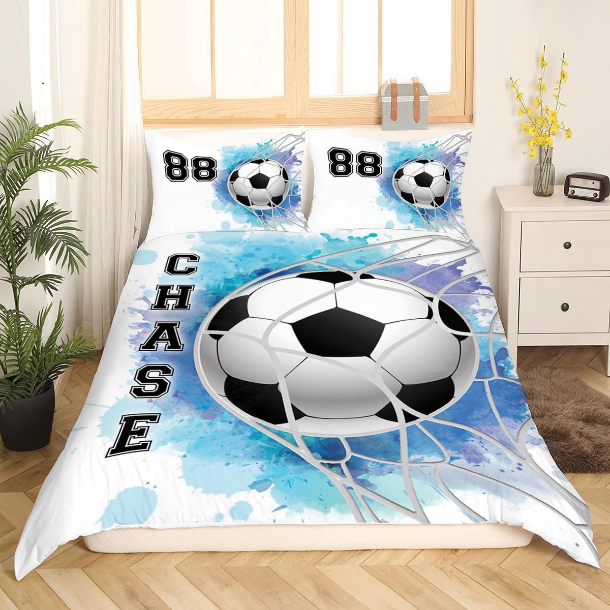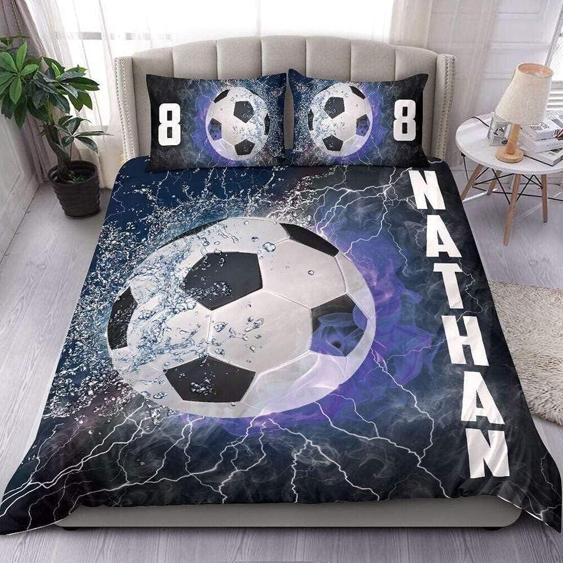 TO ALL SOCCER PLAYER: "In soccer, skill is the art of turning limitations into virtues."------Best Design for Soccer Water And Fire With Your Name Bedding Set Duvet Cover Bedding Sets★★★Each package includes 3 items: 1 x Duvet cover NO STUFFING INSIDE 2 x Pillow Covers★★★ECO-FRIENDLY MATERIAL: Only eco-friendly inks used, no chemicals used, no dye substance harming the health of you or your family. Colors won't fade thanks to new digital printing methods. ★★★BEST GIFTS: A great gift idea for your mom, dad, sister, brother, grandma, wife, husband, and all other beloved ones with 10's thousands of surprising designs in our collection. You can find a design for everybody and every interest. Either a gift to your family or friend, relative or boyfriend girlfriend, or to yourself, the item should be interesting and authentic.★★★CARE INSTRUCTION: Machine wash with cold water; Do not bleach. Tumble dry on low heat. Iron on low/medium heat. ------Scroll to the top now and click Add to Cart to begin your favorite experience!------.