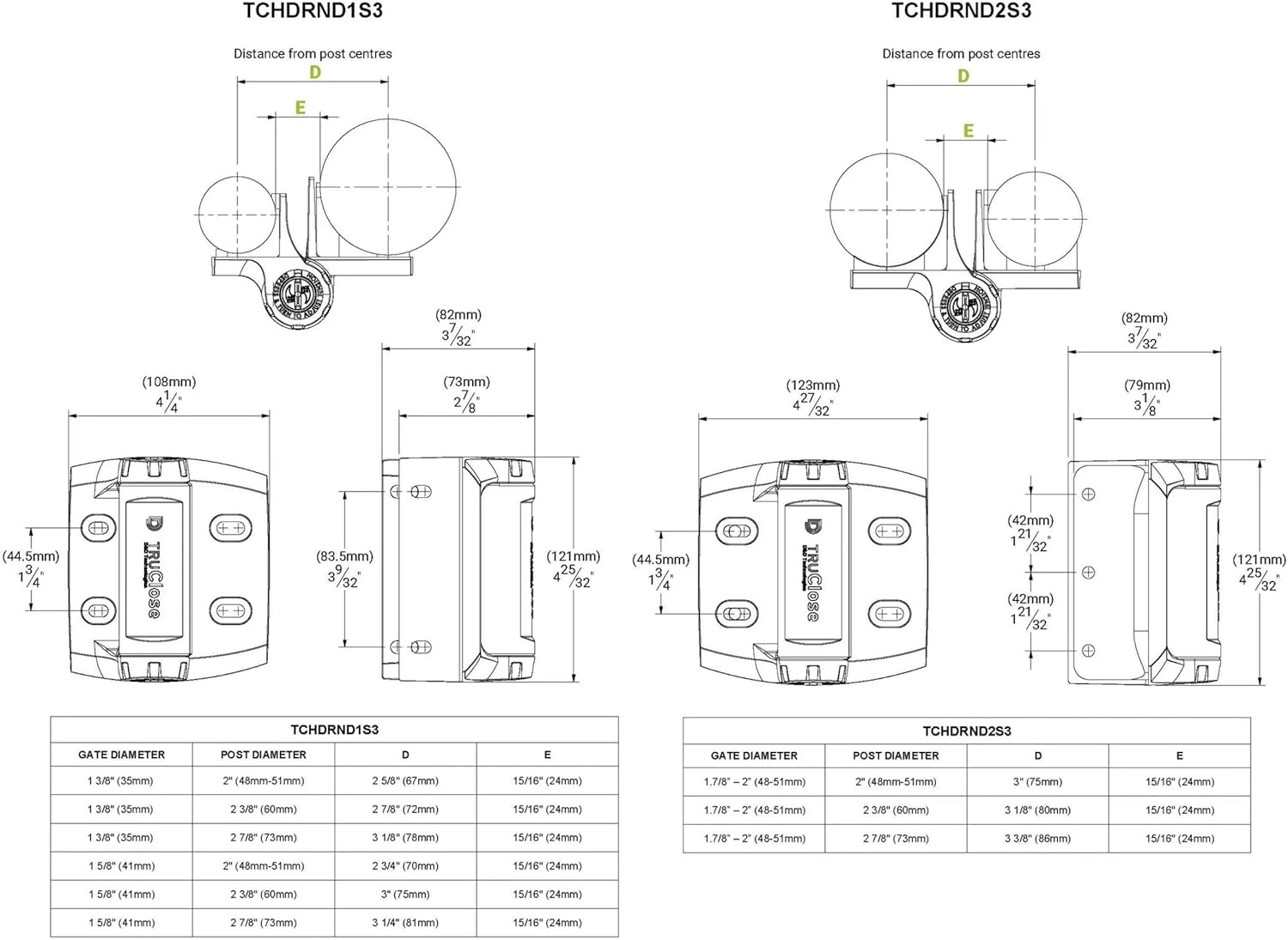 D&D Technologies TCHDRND1S3 TruClose Self Closing Round Post Gate Hinges, for Chain Link Gates up to 154 Pounds, for 1 3/8" and 1 5/8" Gate Diameters, for Round Gate Frame and Post, Black, 2 Count