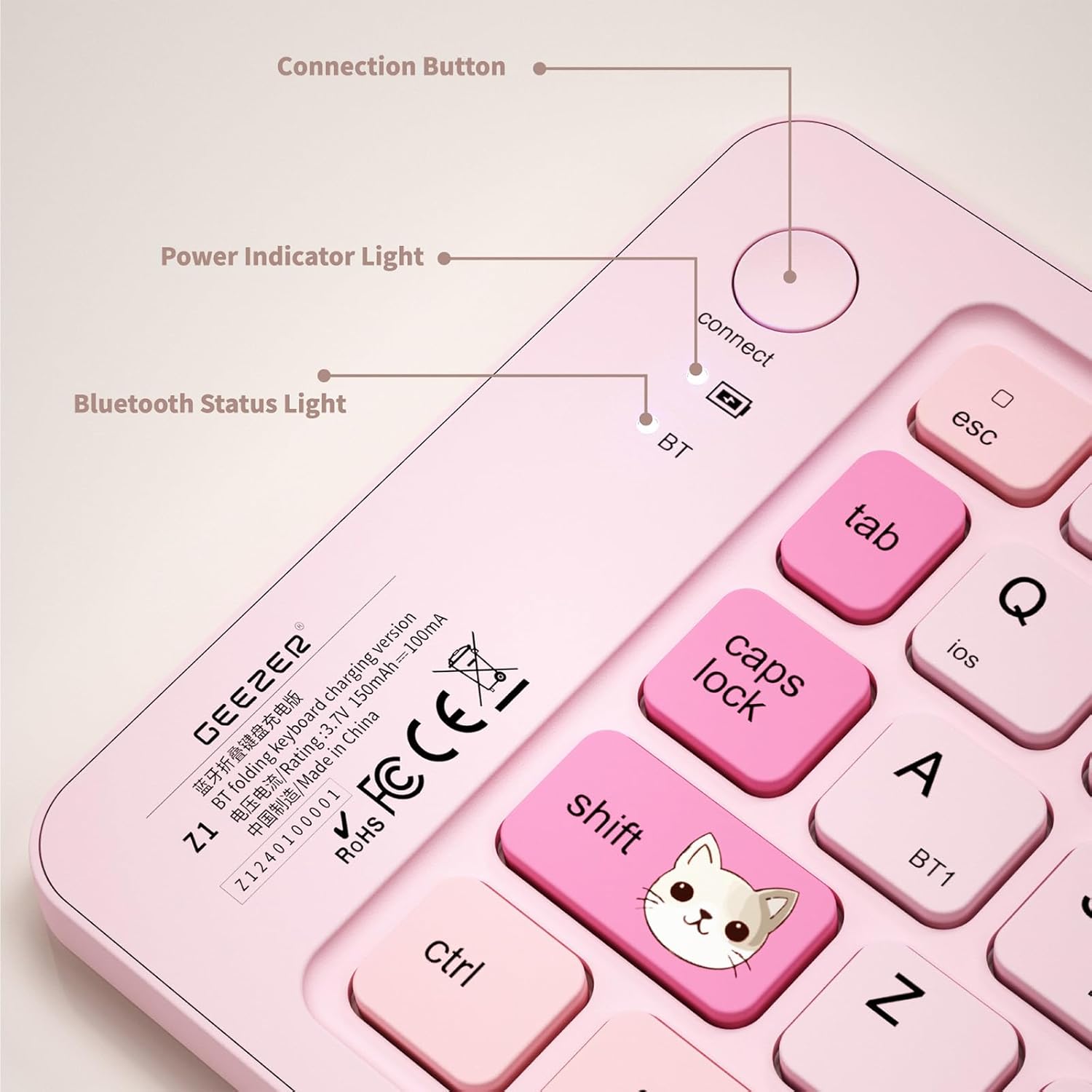 Foldable Compact Keyboard, Portable Bluetooth Keyboard with , Pocket-Sized Wireless Travel Keyboard, for iPad, iPhone, Smartphone, Tablet and Laptop