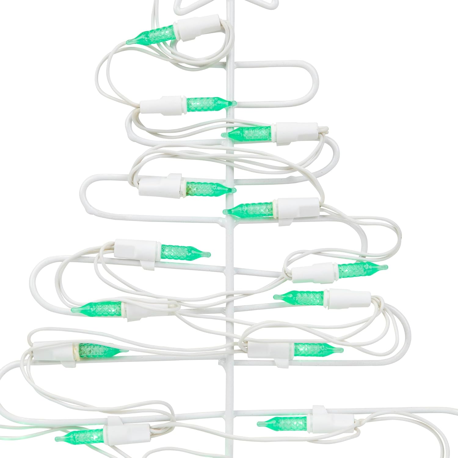 Embrace a holiday look that’s modern and fresh with this 12.25-inch LED Christmas tree window silhouette. Featuring a unique free-form Christmas tree design with a star topper, this Christmas window decoration is illuminated by 20 super-bright LED mini bulbs in festive green and polar white. The battery-operated design means no messy cords or outlet searches – just hang it with the included suction cup and enjoy the double-sided glow from inside or out. With a built-in timer to preserve battery life and energy-efficient LEDs that stay cool to the touch, this contemporary Christmas tree window decor is a stylish, worry-free way to brighten up your winter windows. Product Features:. Color: green and white. Bulbs: polar white bulbs. Polar white bulbs, also known as cool white have a slight bluish hue to them. Number of bulbs: 20. Bulb size: M5 LED mini bulbs. 20" white lead cord. Fully assembled decoration comes in 1 piece. White wire. Double-sided design Additional Product Features:. Super bright bulbs. Cool to the touch. LED lights use 90% less energy. Durable non-glass replaceable bulbs. UL certified and approved for indoor use only. Comes with 1 suction cup for hanging, spare replacement bulbs and an extra fuse. If one bulb burns out, the rest will stay lit. Lights are equipped with lamp lock feature, which makes them replaceable, interchangeable and keeps them from falling out. Comes with a replacement bulb. On/Off switch with timer on battery pack Dimensions: 12.25"H x 9.5"W x .25"D. Material(s): plastic bulbs/wire/metal frame Note: requires 3 AAA batteries - not included